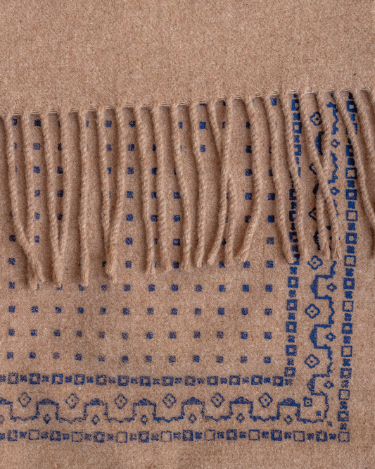 Sciarpa in Lana Vergine con Frange e Bandane Stampate a Mano