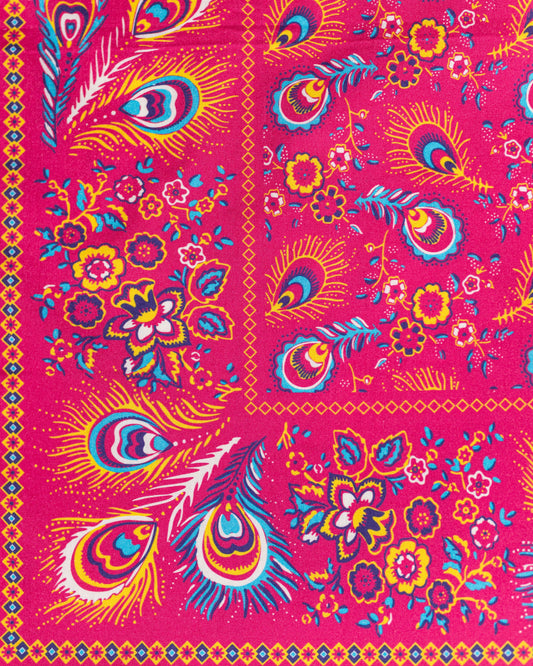 Bandana in Cotone — Piume di Pavone Rosa Barbie — Made in Italy
