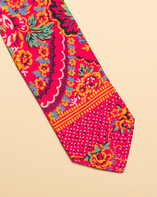 Cravatta in Seta Rosa Fucsia con motivi floreali tradizionali dei Balcani