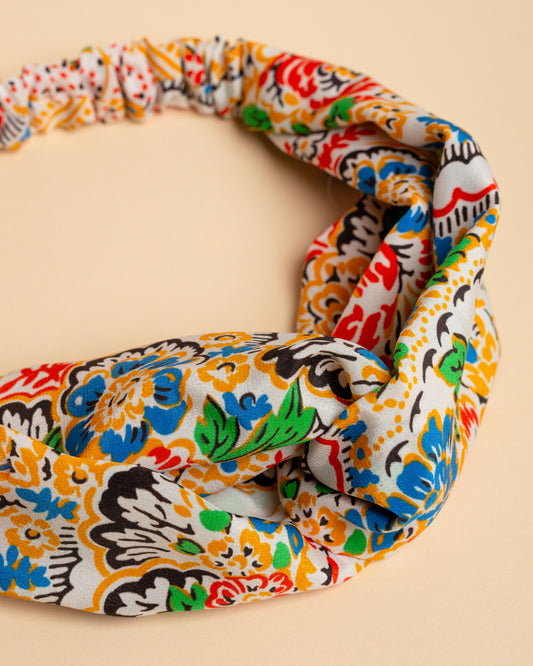 Fascia per capelli in seta Bianca con motivi floreali tradizionali dei Balcani