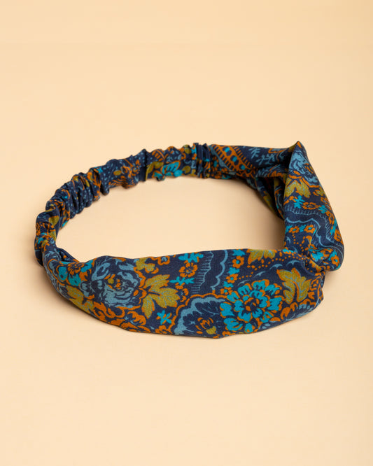 Fascia per capelli in seta Blu con motivi floreali tradizionali dei Balcani