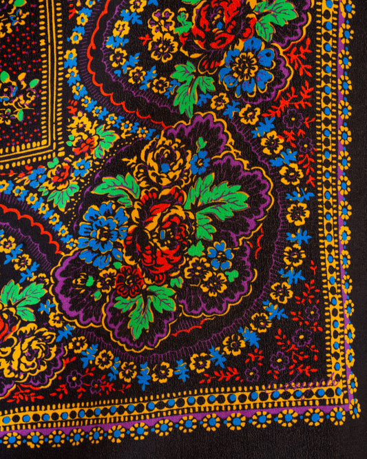 Foulard in seta Nero con motivi floreali colorati tradizionali dei Balcani