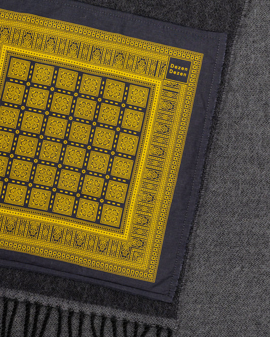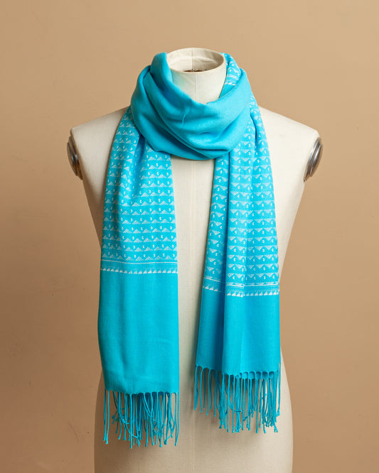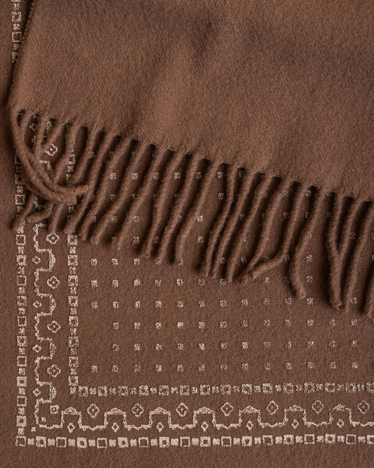 Sciarpa in Lana Vergine con Frange e Bandane Stampate a Mano