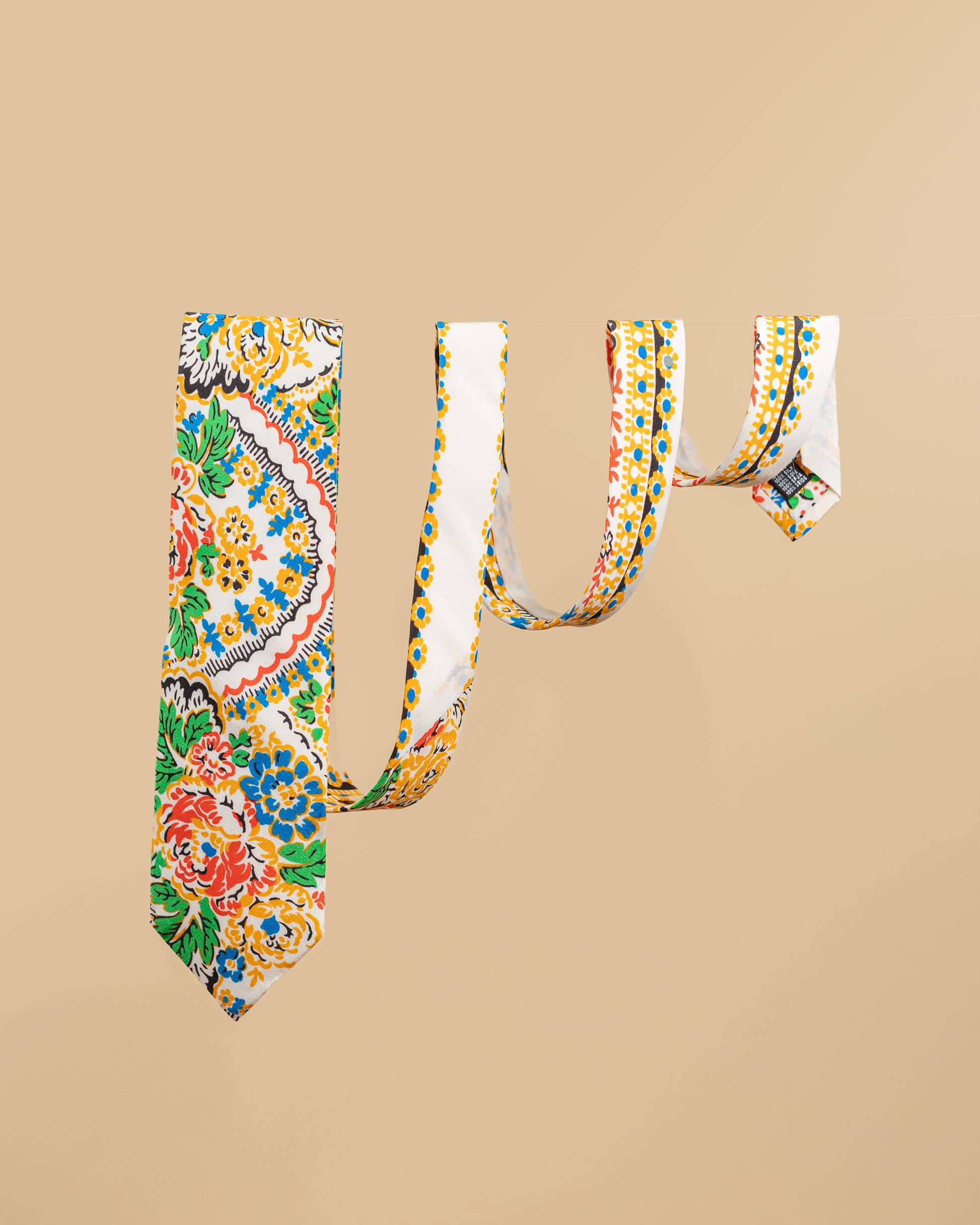 Cravatta in Seta Bianca con motivi floreali tradizionali dei Balcani