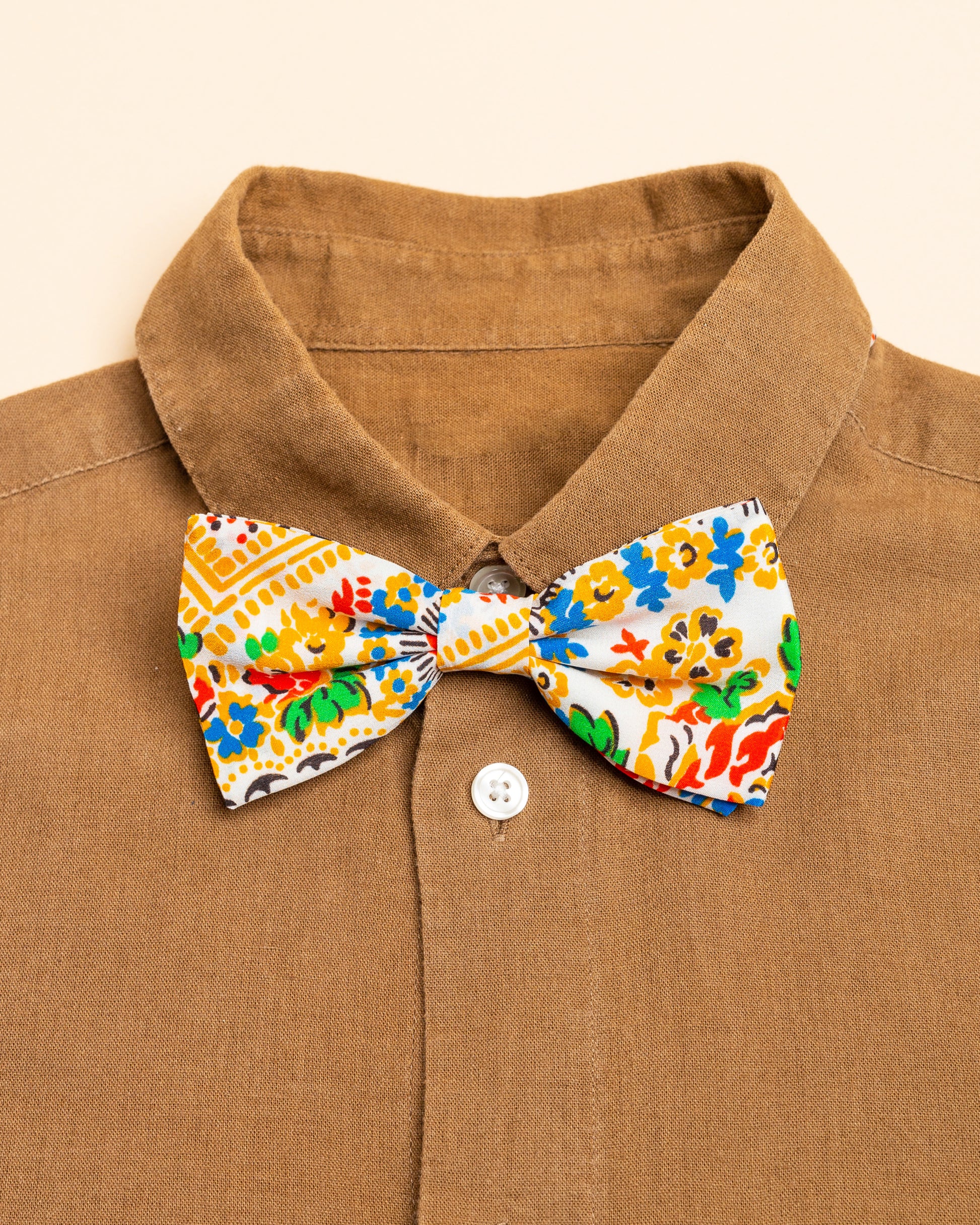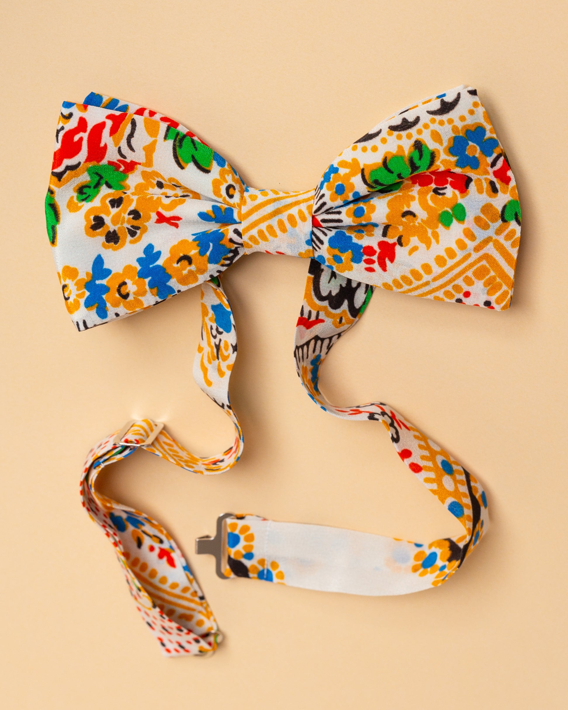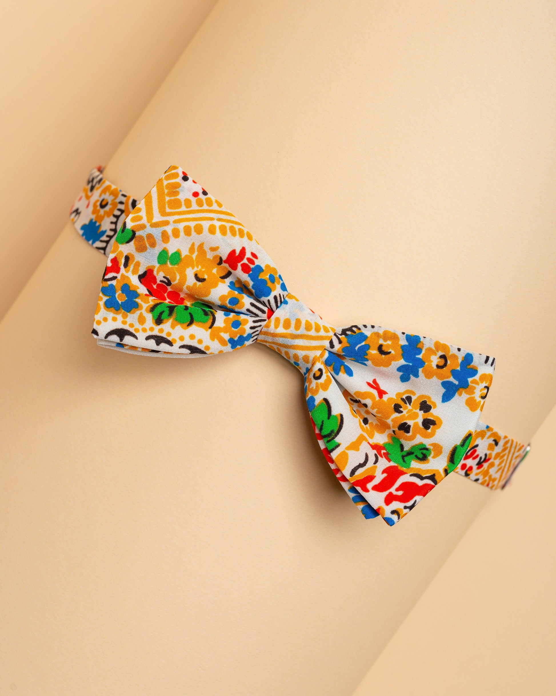 Papillon / Farfallino in seta crêpe de chine dal decoro senza tempo a motivi floreali.