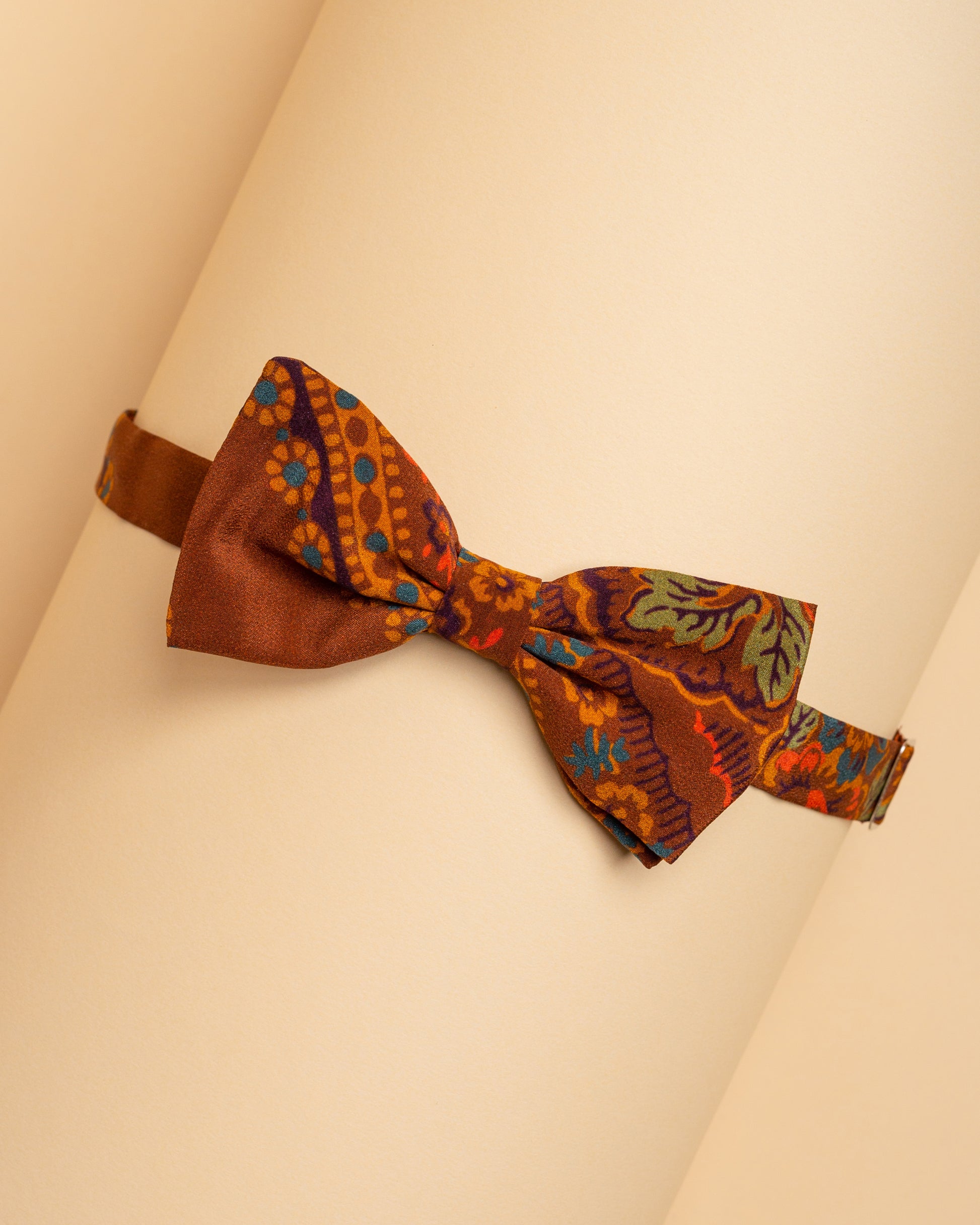 Papillon in Seta Marrone con motivi floreali tradizionali dei Balcani