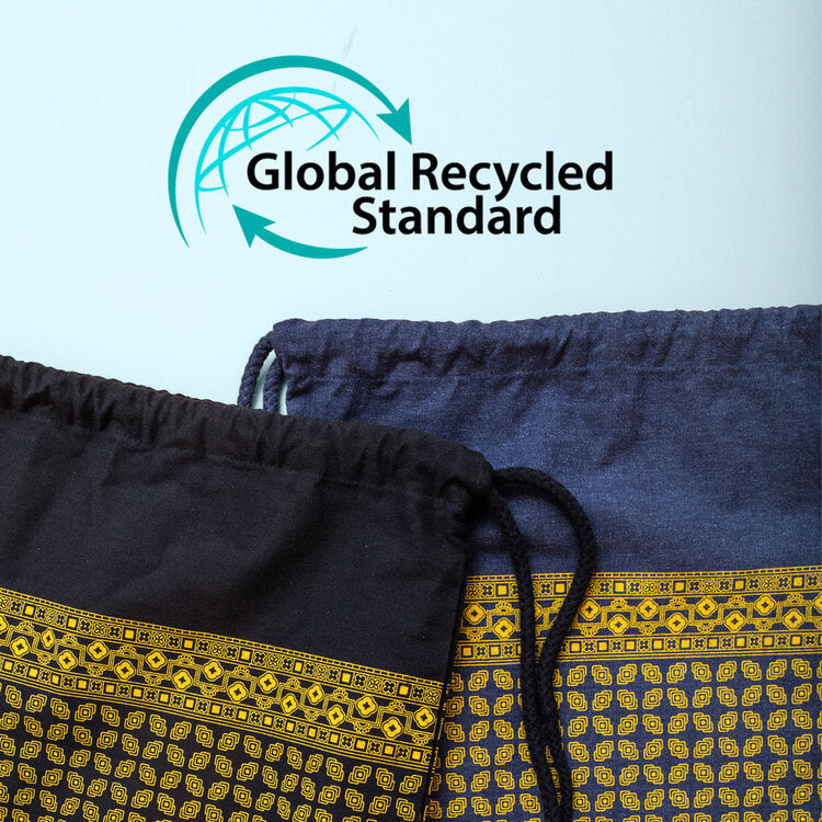 Realizzate in cotone e poliestere riciclati al 100% e derivanti dagli scarti di produzione delle nostre magliette. Certificati Global Recycled Standard.