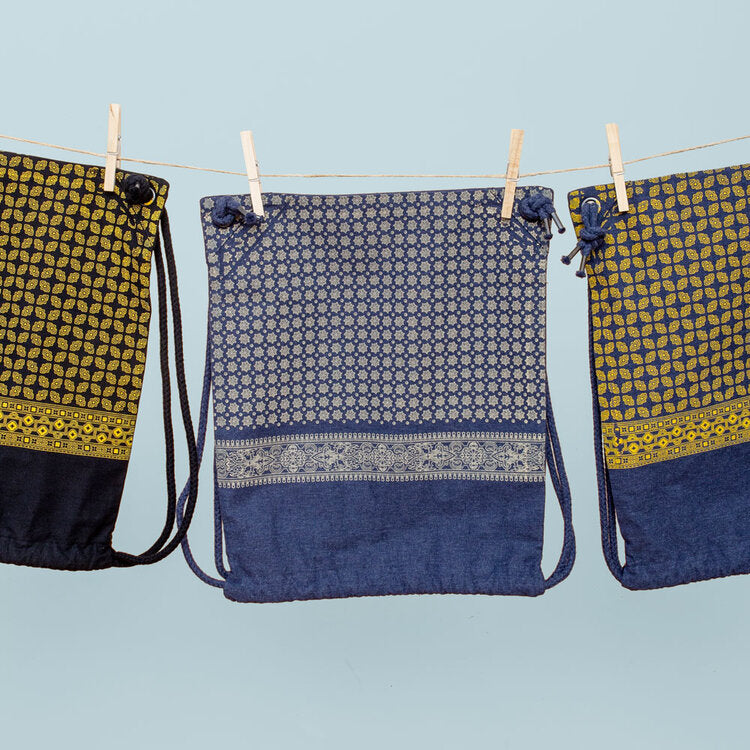 Ogni sacca è unica e stampata rigorosamente a mano, con gli originali quadri serigrafici utilizzati in passato per decorare i tradizionali foulard dell’Est Europa.