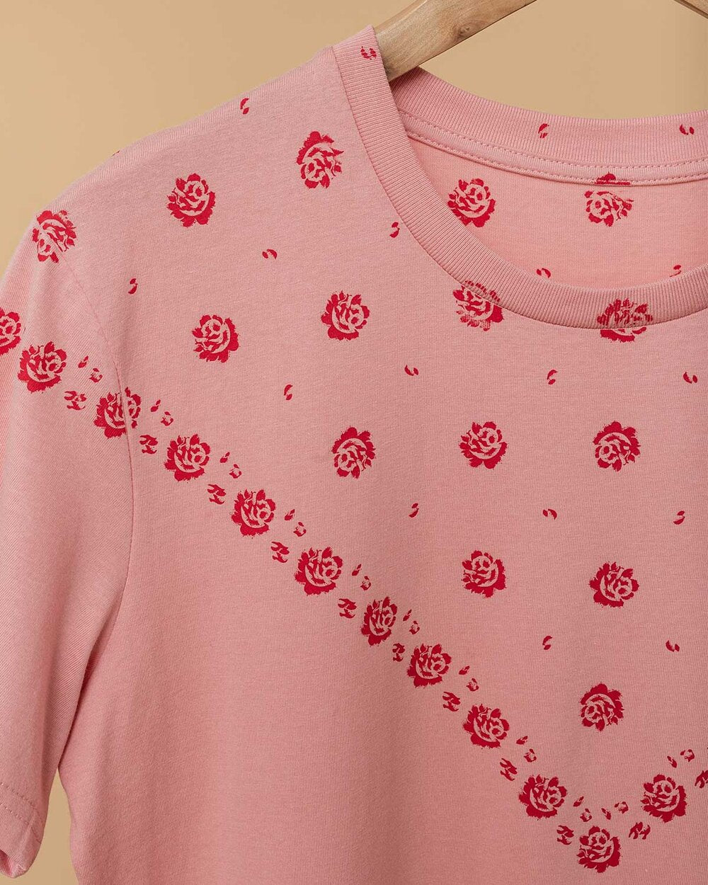 La stampa è stata realizzata interamente a mano nel nostro laboratorio utilizzando uno degli originali quadri serigrafici utilizzati in passato per decorare i tradizionali foulard portati sul capo dalle donne dell’est Europa.