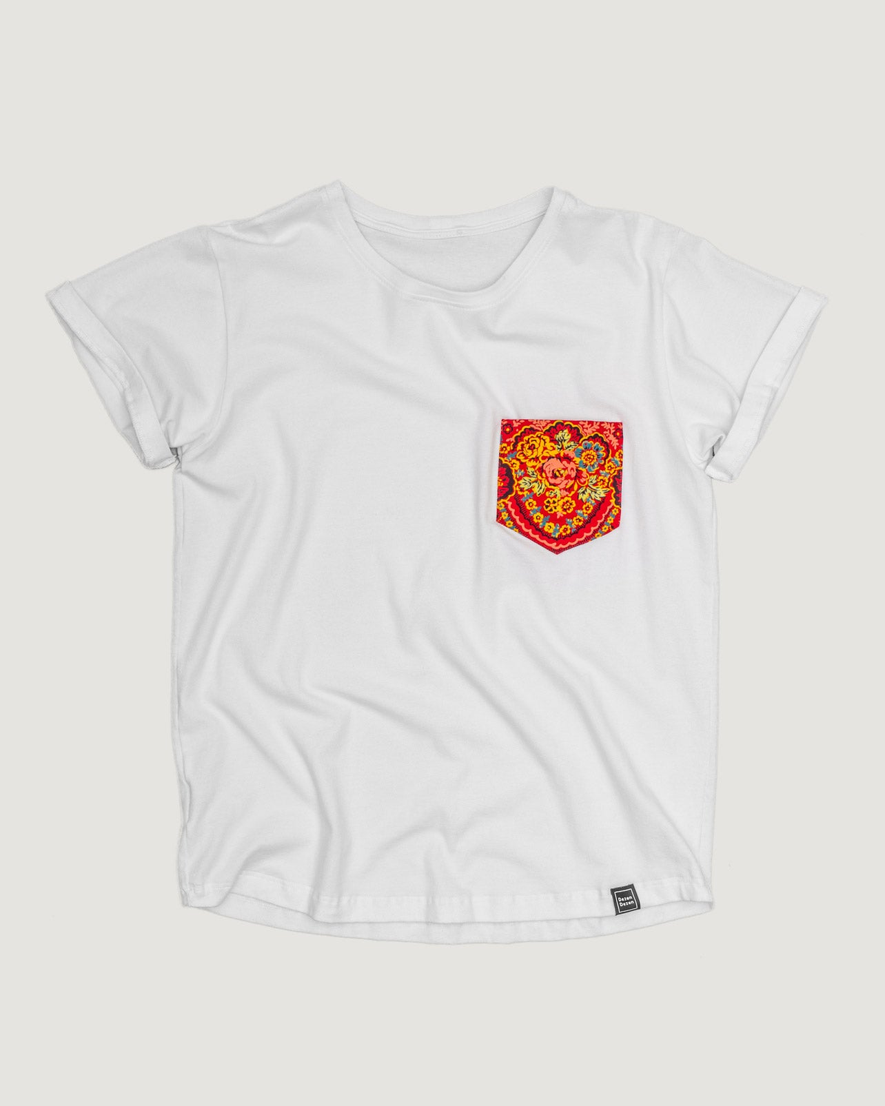 Il taschino è stato realizzato da una porzione dei foulard tradizionali che venivano indossati sul capo delle donne di tutta l'ex-Jugoslavia.